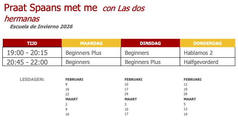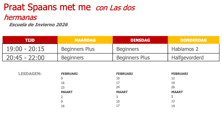 “Más más más! Dat is wat ik denk wanneer ik het heb over de Spaanse cursus(sen) van Las dos hermanas … Dikke aanrader!! En de zussen zijn ook nog eens heel behulpzaam, grappig, weten ontiegelijk veel en de sfeer in de online lessen is relaxed en gestructureerd op de juiste manier. Dus twijfel niet en schrijf je in. Je gaat er echt geen spijt van krijgen. Ik vind het iedere cent waard.”