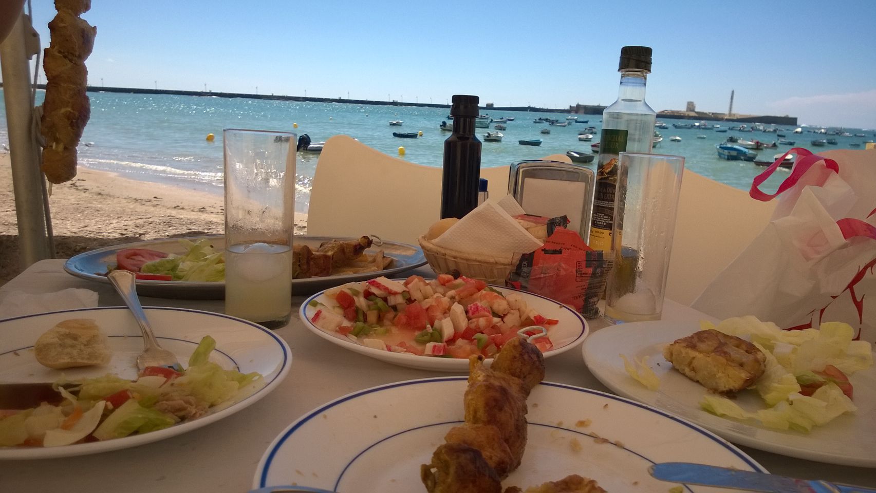 ‘Hablaís español?’ vroeg ze. Nadat wij bevestigend antwoordden, vervolgde ze: ‘Qué buscaís?’ Ze had ons fronsend naar die kaart zien turen en vond het welletjes. Nadat we haar vertelden op zoek te zijn naar restaurant El Faro, bood ze aan ons er naartoe te brengen. We moesten wel eerst even mee naar het barretje waar ze met haar vriendinnen had afgesproken para tomar una copita met hen. Daarna bracht ze ons keurig naar het restaurant. Zij, en Chipiona, stal voorgoed ons hart.