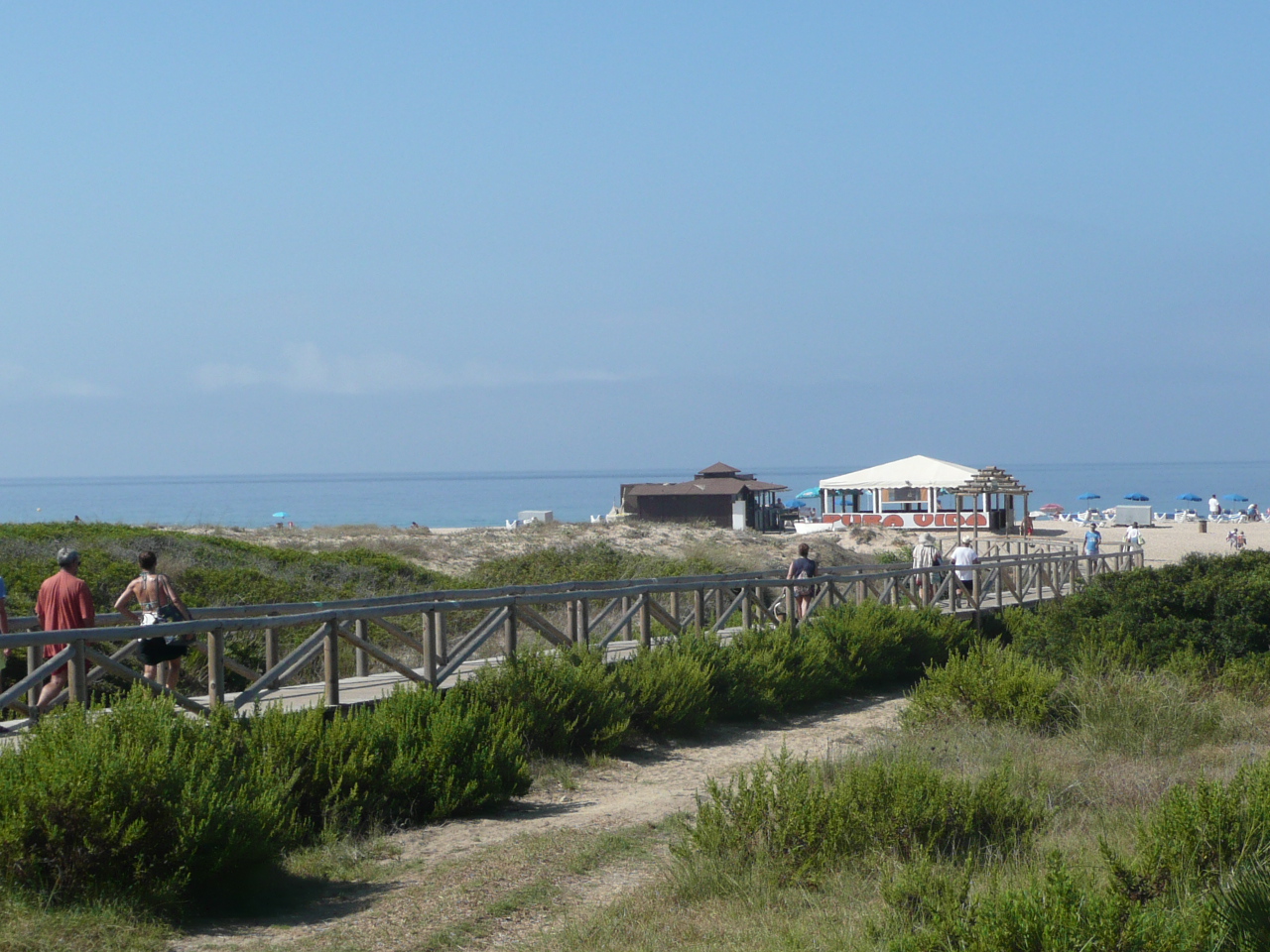 Het strand van dit kustplaatsje doet Caribisch aan; compleet met mangroven en van die eindeloze houten loopbruggen. Je waant je daadwerkelijk op een bounty eiland. Het zand is prachtig wit en poederig. En op dit strand, behalve bij de hotels in het centrum, geen ligbedden of parasols. Slechts een chiringuito voor de broodnodige versnaperingen.